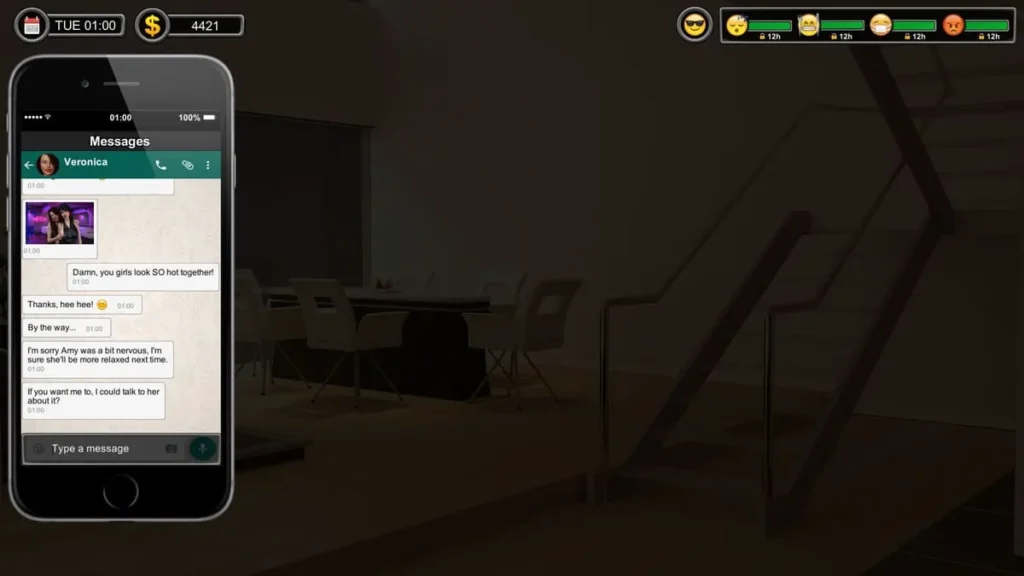 Your daily goal should be: 1-2 Job shifts for money, 1-2 Gym sessions for Strength, and targeted interactions with 2-3 key characters to boost their stats. Always check your phone! 📱 It holds your Man of the House achievements, picture gallery, and crucial hints about what a character might want next.